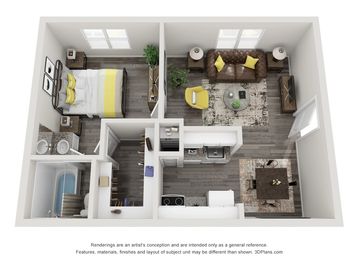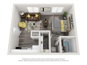 Large Studio - Includes all appliances including built in Microwave, Pantry, 2in. Blinds, Plank vinyl flooring, 2 tone paint, full bath w/ Vanity and large walk in closet. Central Heat & Air!
